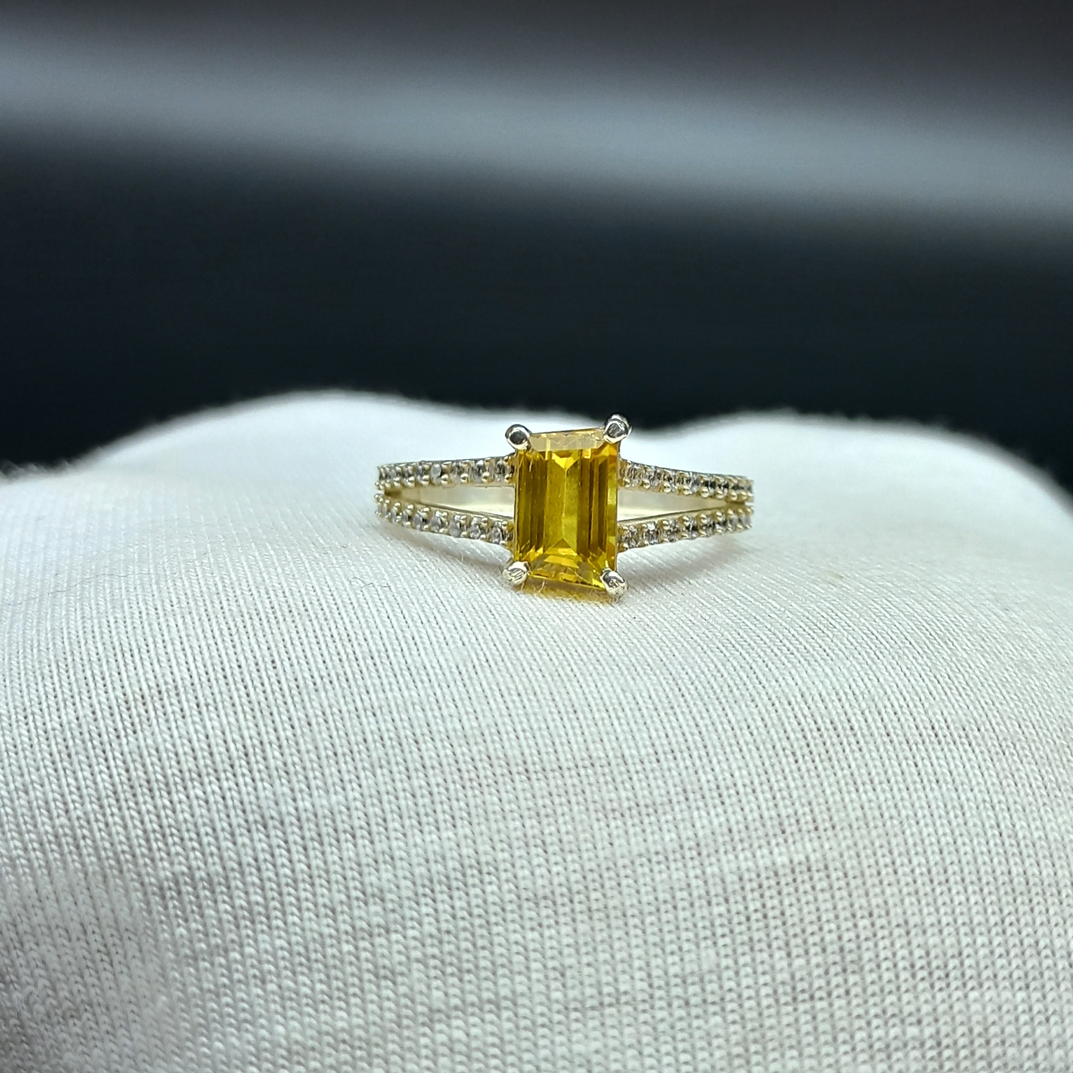 925 Sterling Silver Ring | Natural Citrine Solitaire Ring | Fancy Cut Gemstone Silver Ring | Citrine Jewelry | November Birthstone Jewelry |
