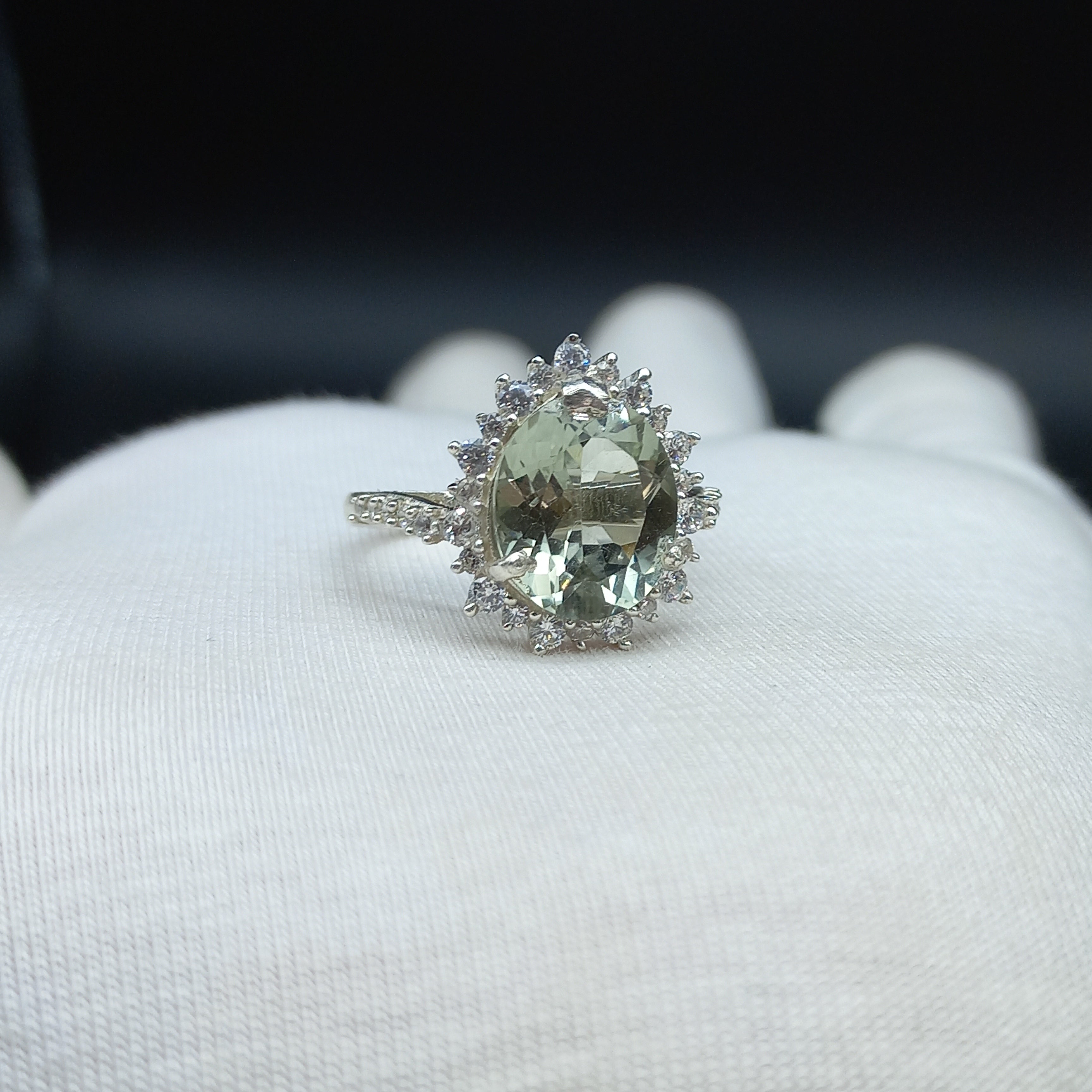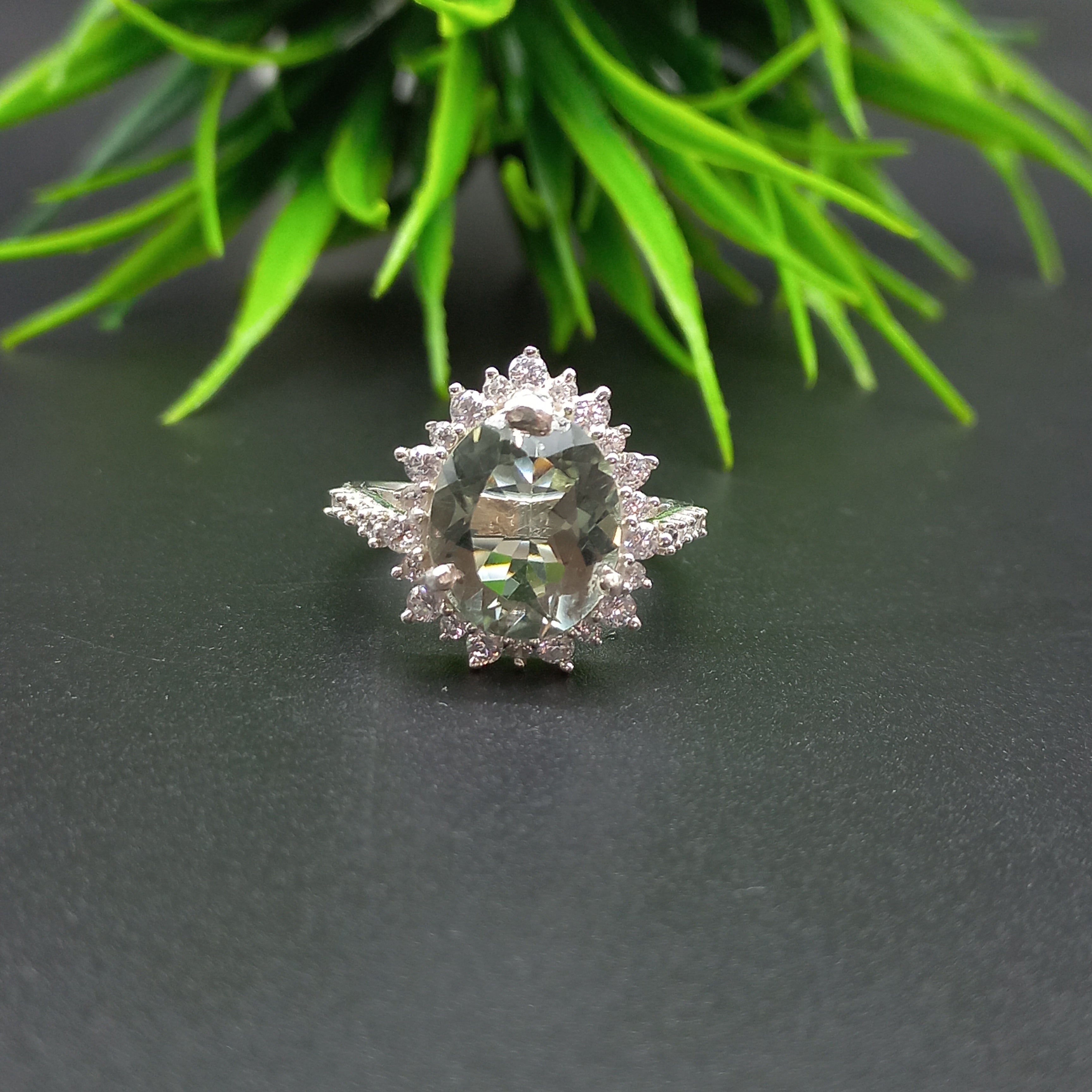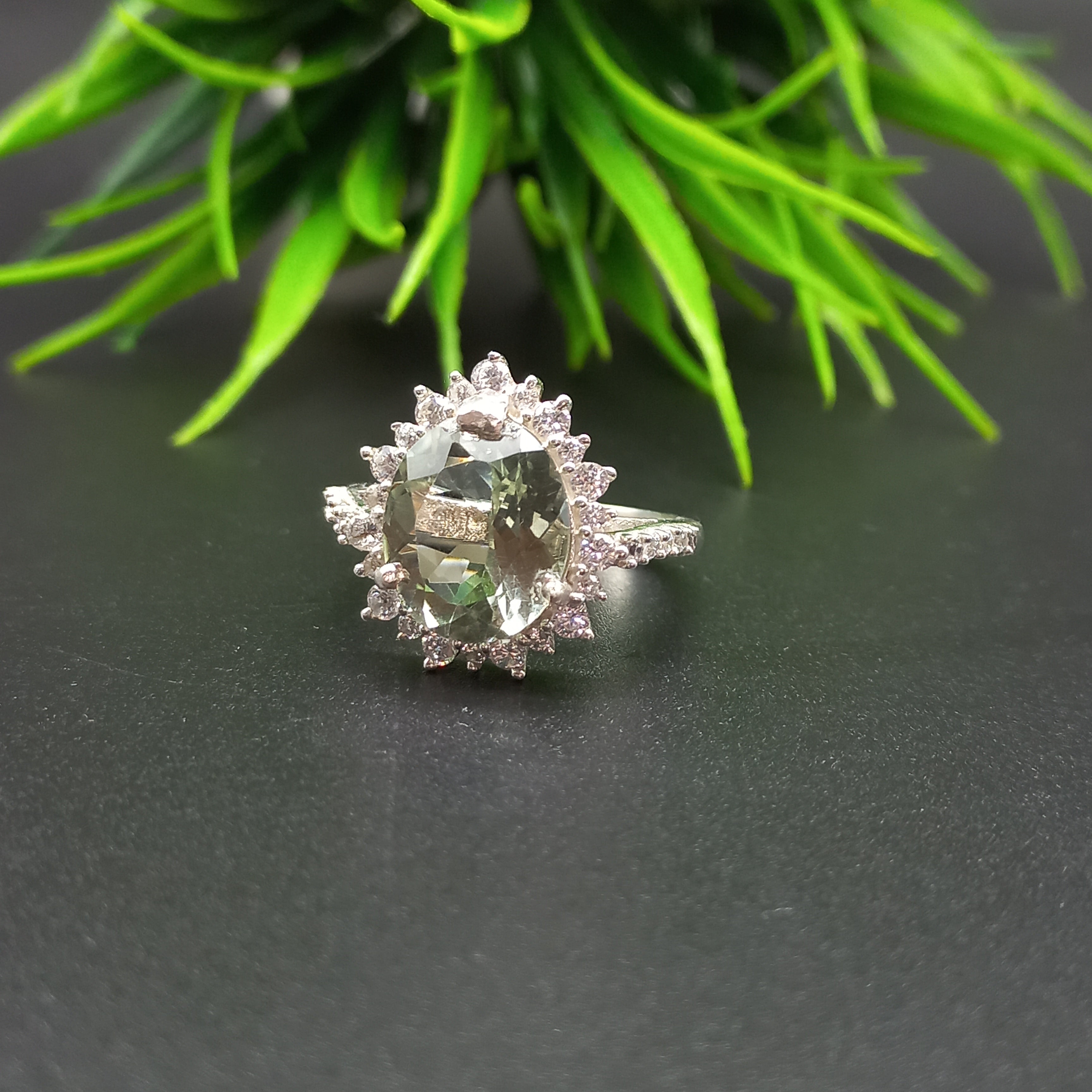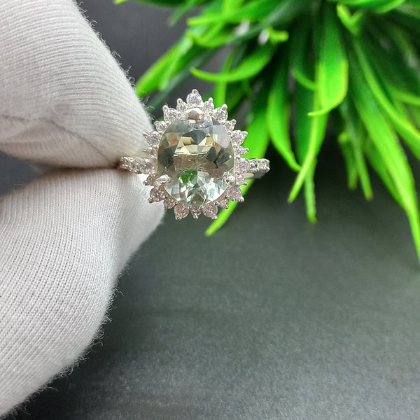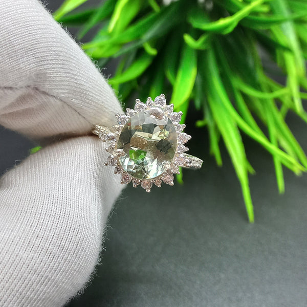 925 Sterling Silver Ring | Natural Green Amethyst Solitaire Ring | Oval Cut Gemstone Silver Ring | Dainty Jewelry | Amethyst Jewelry |