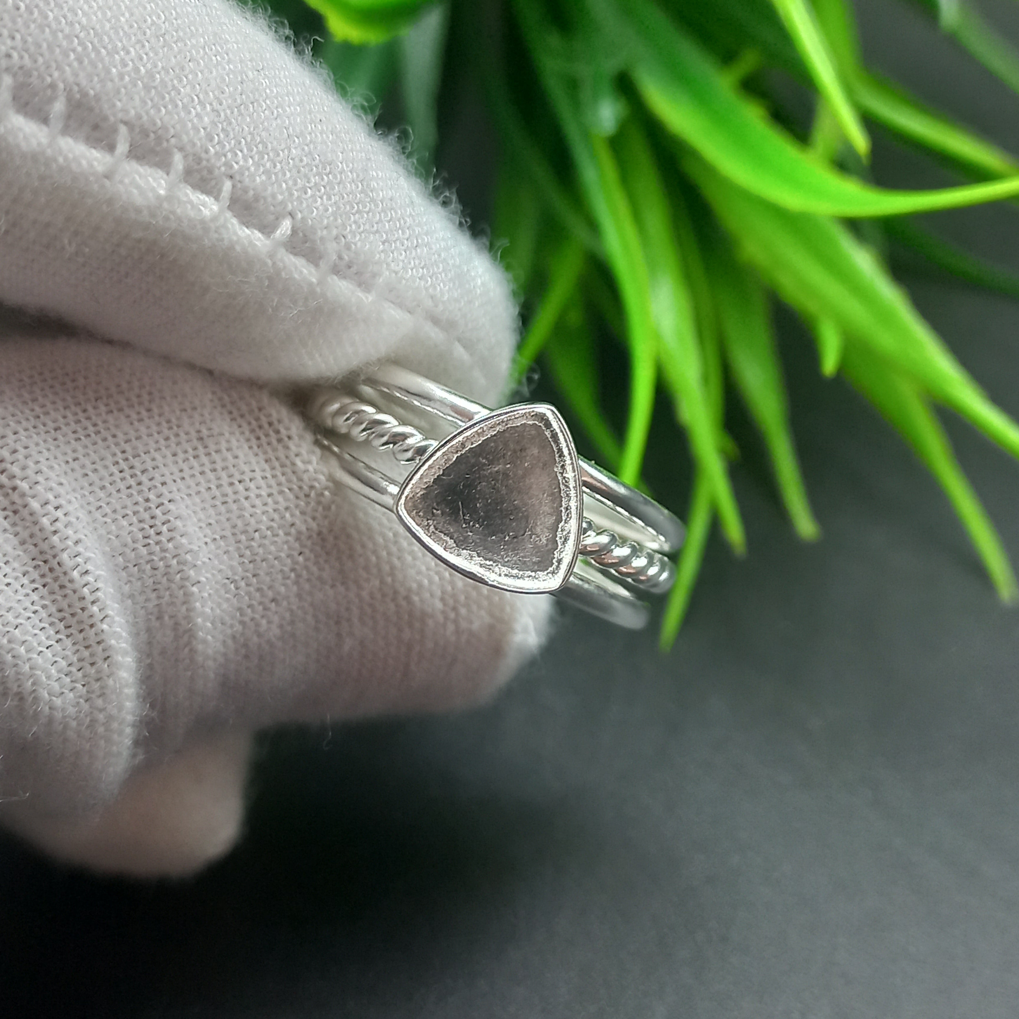 925 Sterling Silver Ring, Spiral Wire Plain Bezel Cup Trillion Close Blank Ring, Setting For Making Ring 5 To 50 MM, DIY Jewelry Supplies