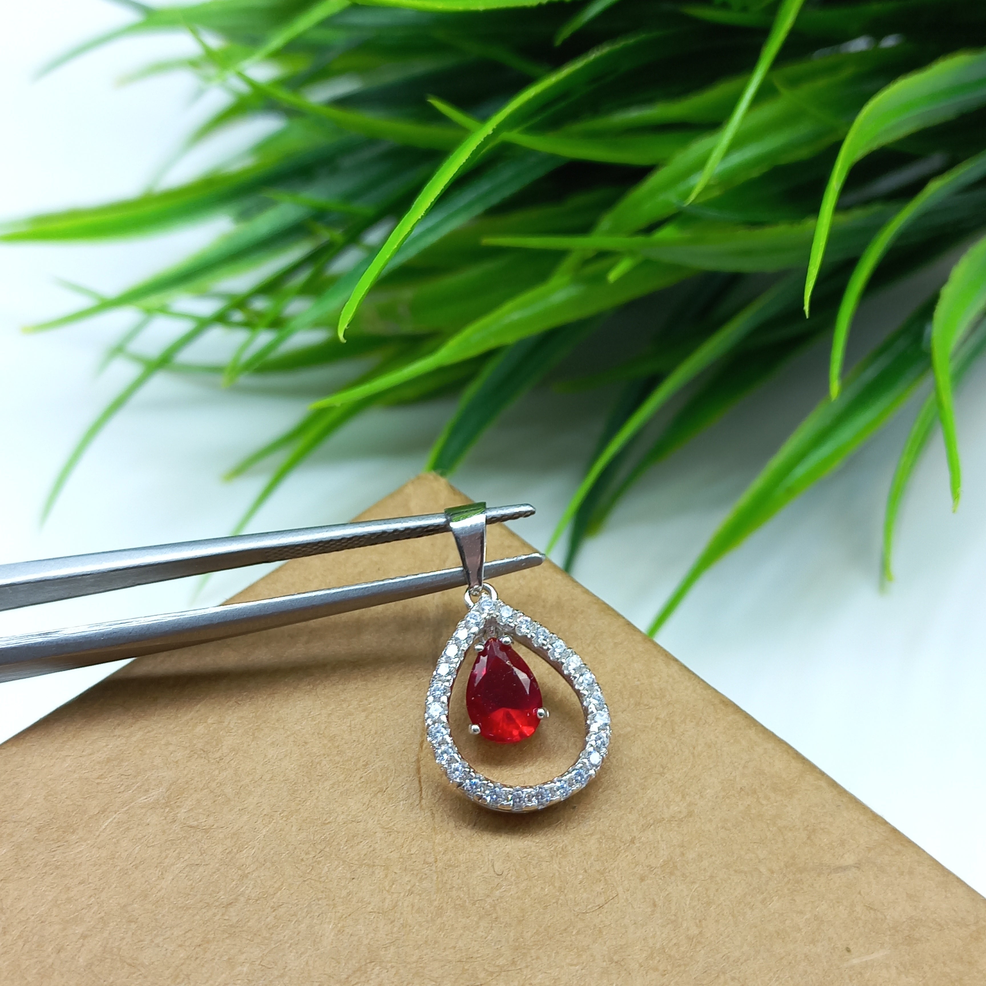 925 Sterling Silver Red Cubic Zirconia Pendant, 6X4 MM Eye Clean Red Cubic Zirconia Pendant For Gift, Awesome Birthday Gift For Her