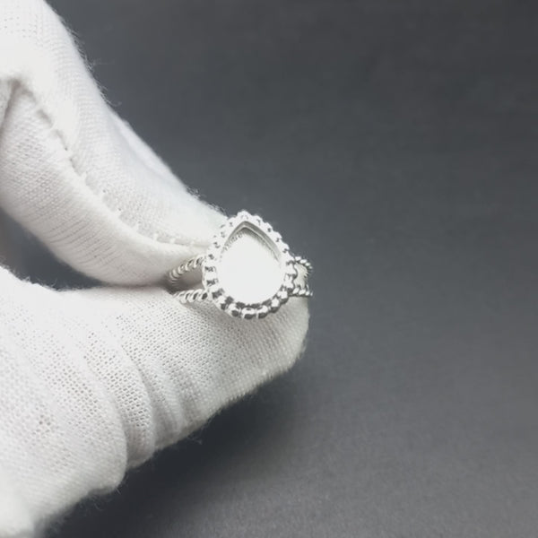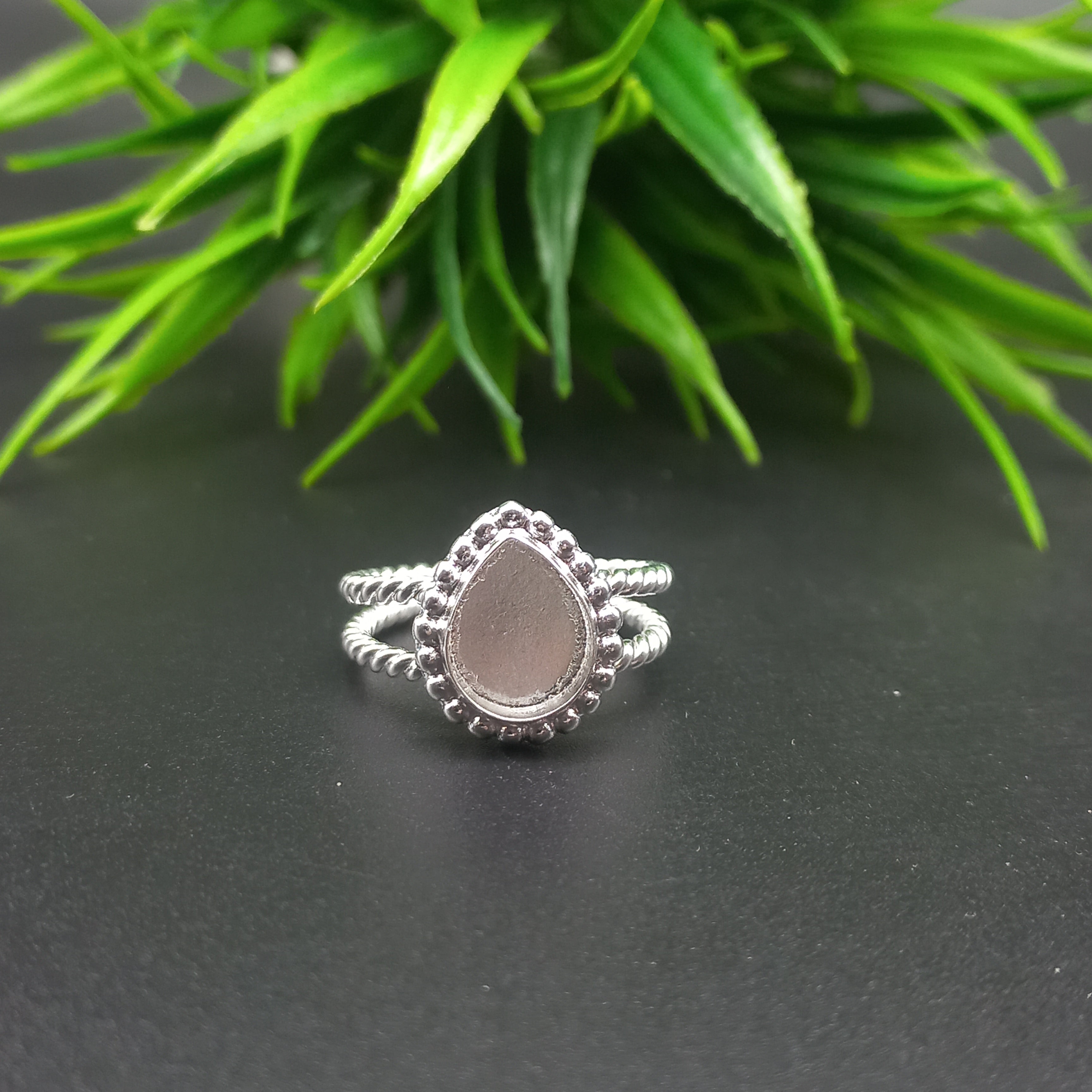 925 Sterling Silver Beaded Close Blank Pear Ring, Double Spiral wire Bezel Cup Ring, Setting For Making Ring 6x4 MM To 14x21 MM, DIY Jewelry