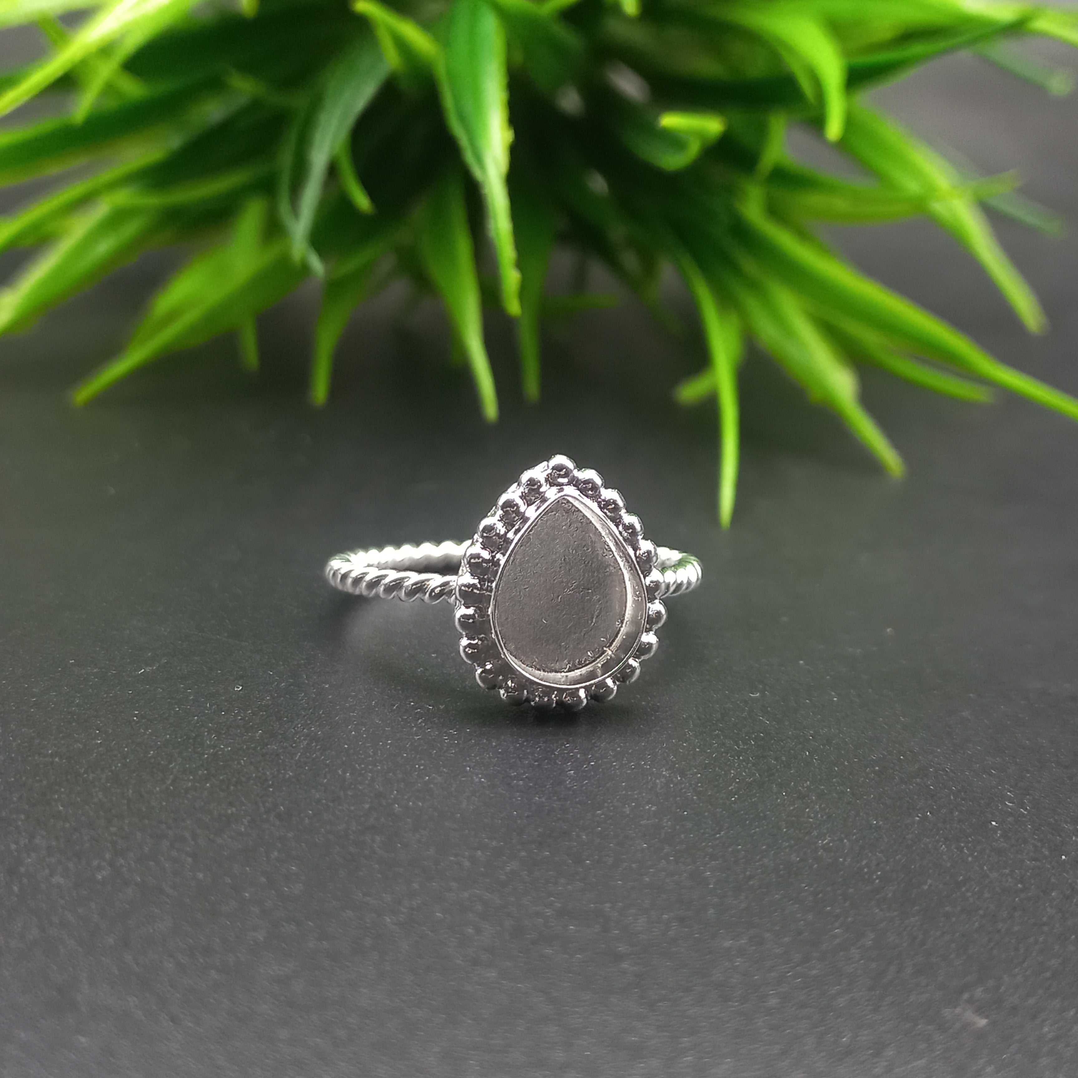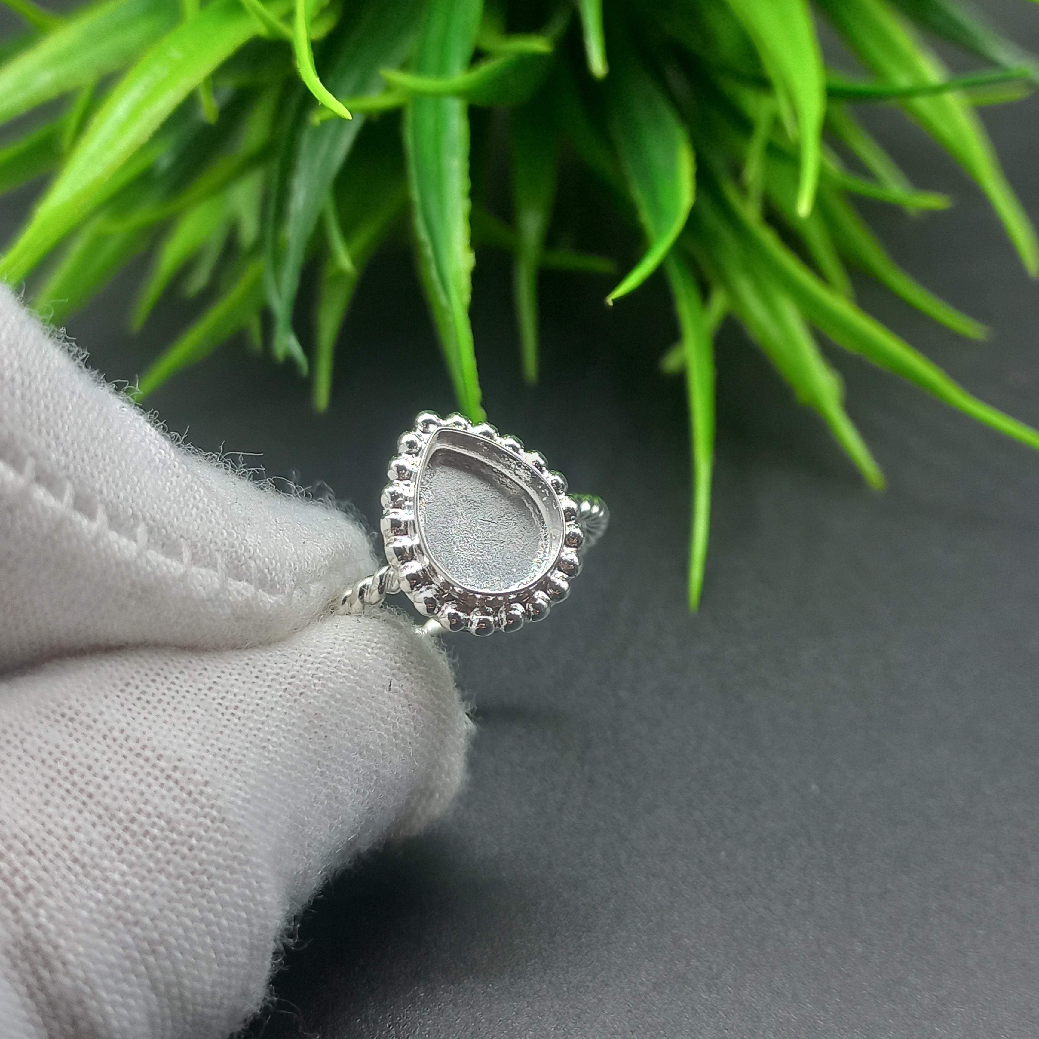 925 Sterling Silver Close Blank Pear Ring, Beaded Spiral wire Bezel Cup Ring, Setting For Making Ring 6x4 MM To 14x21 MM, DIY Jewelry