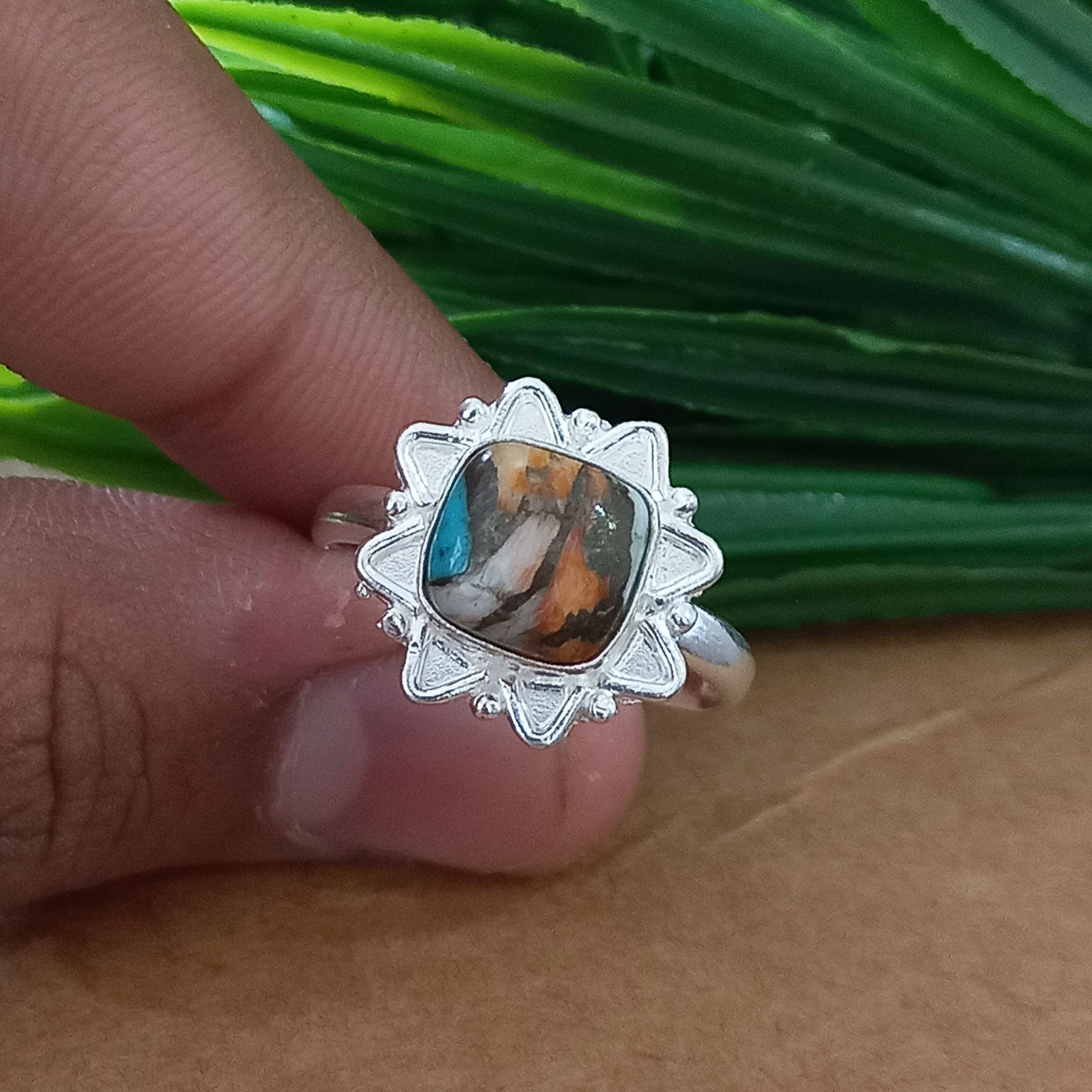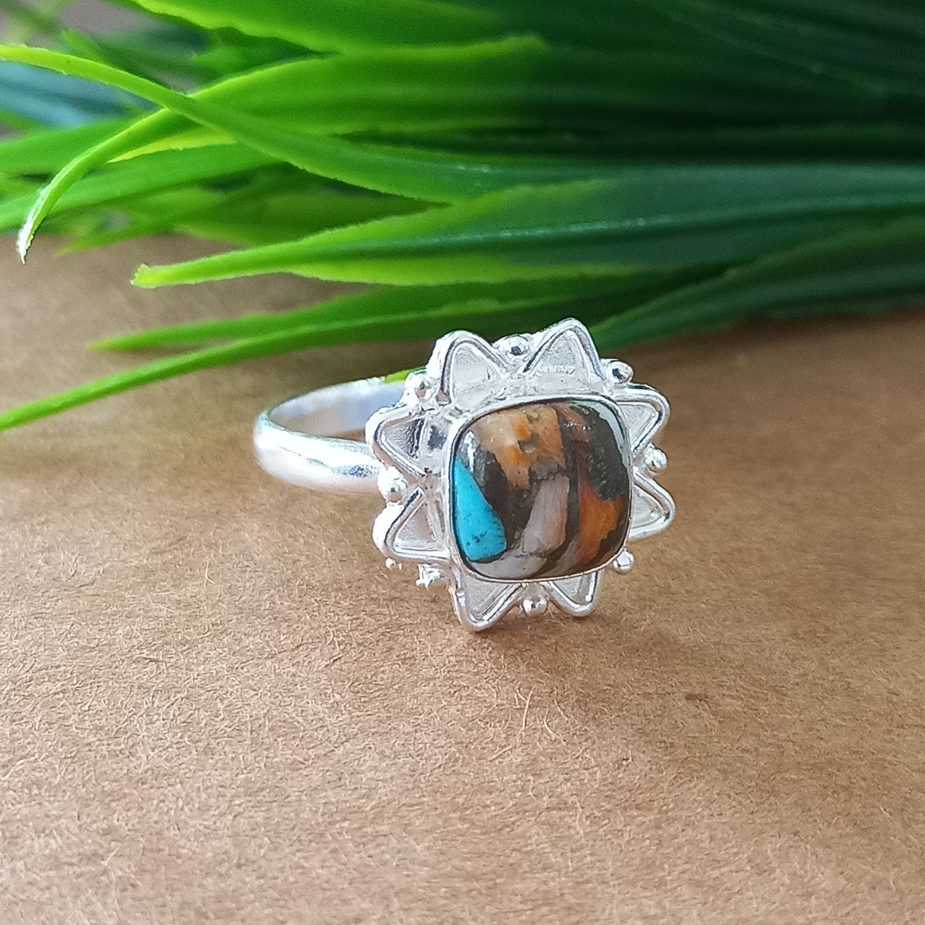 New Design Natural Oyster Copper Turquoise Cushion Stone Ring, 925 Sterling Silver Cushion Turquoise Ring, Turquoise Cushion Ring