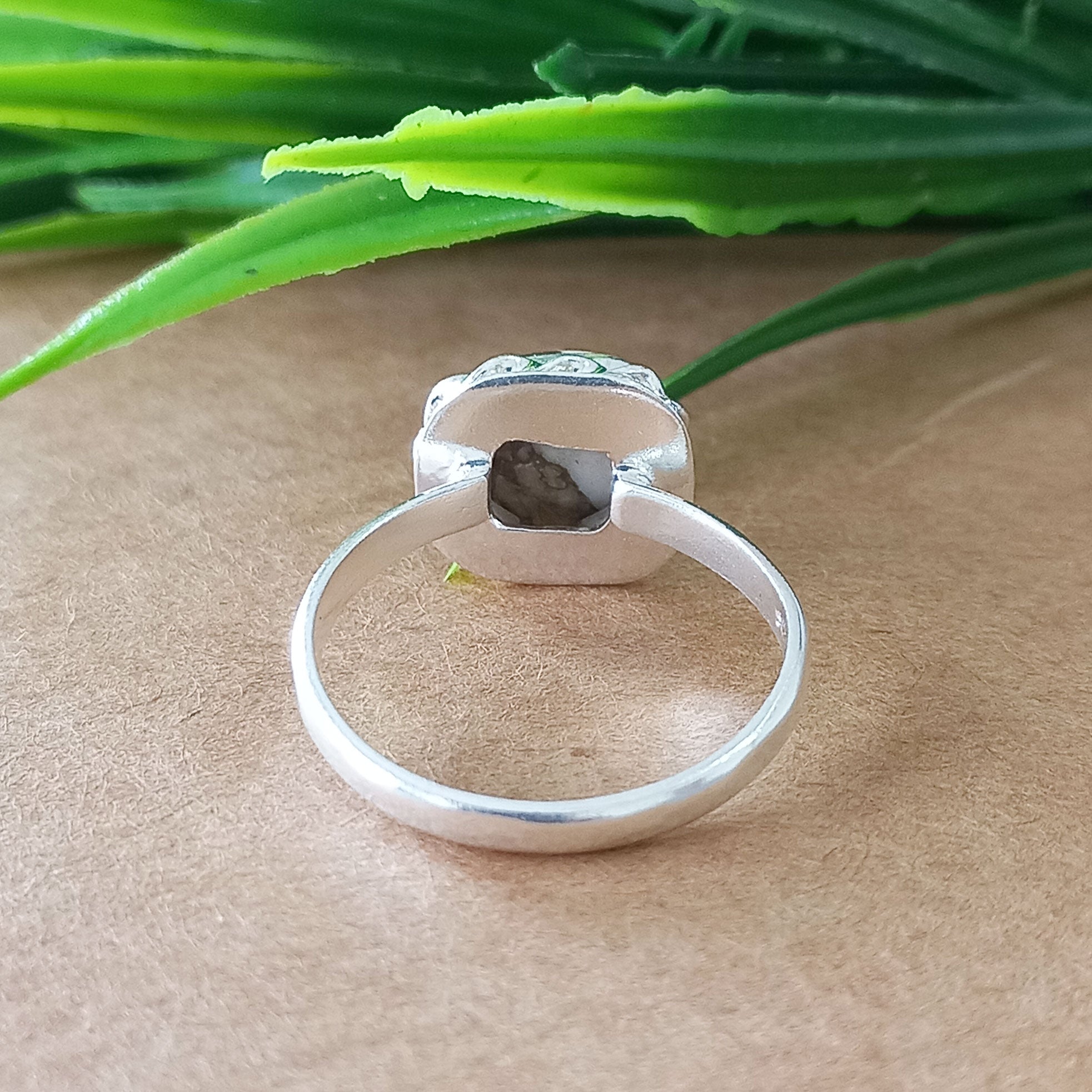 New Design Natural Oyster Copper Turquoise Cushion Stone Ring, 925 Sterling Silver Cushion Turquoise Ring, Turquoise Cushion Ring