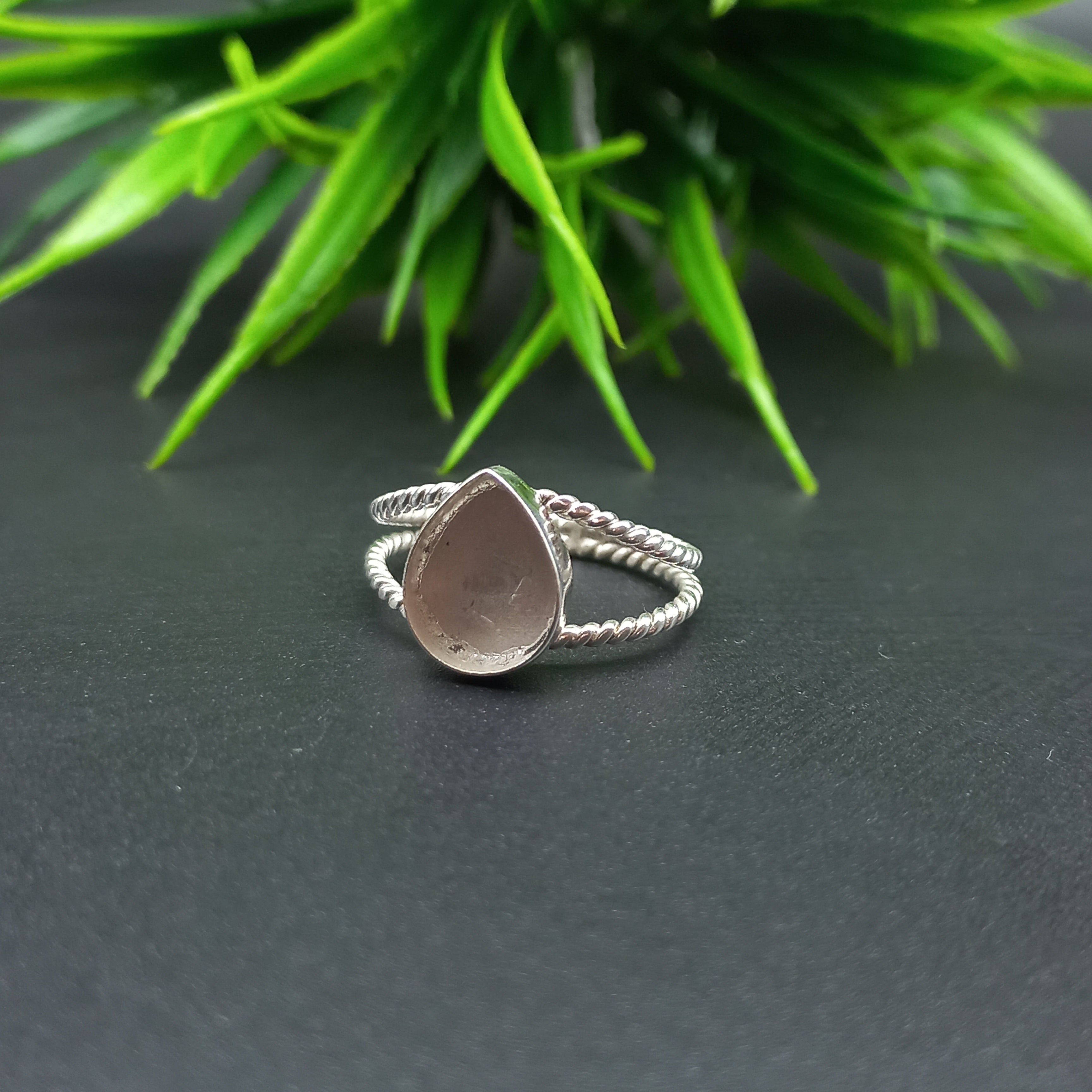 925 Sterling Silver Pear Ring, Double Spiral Wire Design Bezel Cup Close Blank Ring, Setting For Making Ring 6x4 MM To 8x10 MM, DIY Jewelry