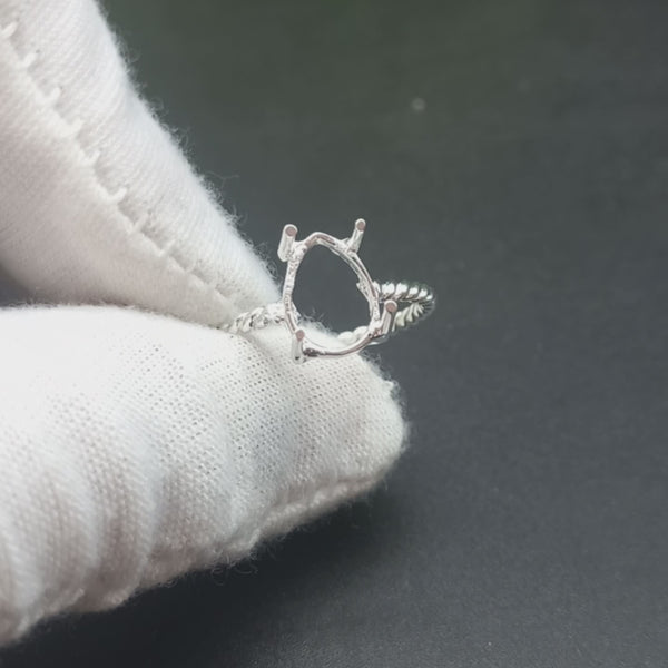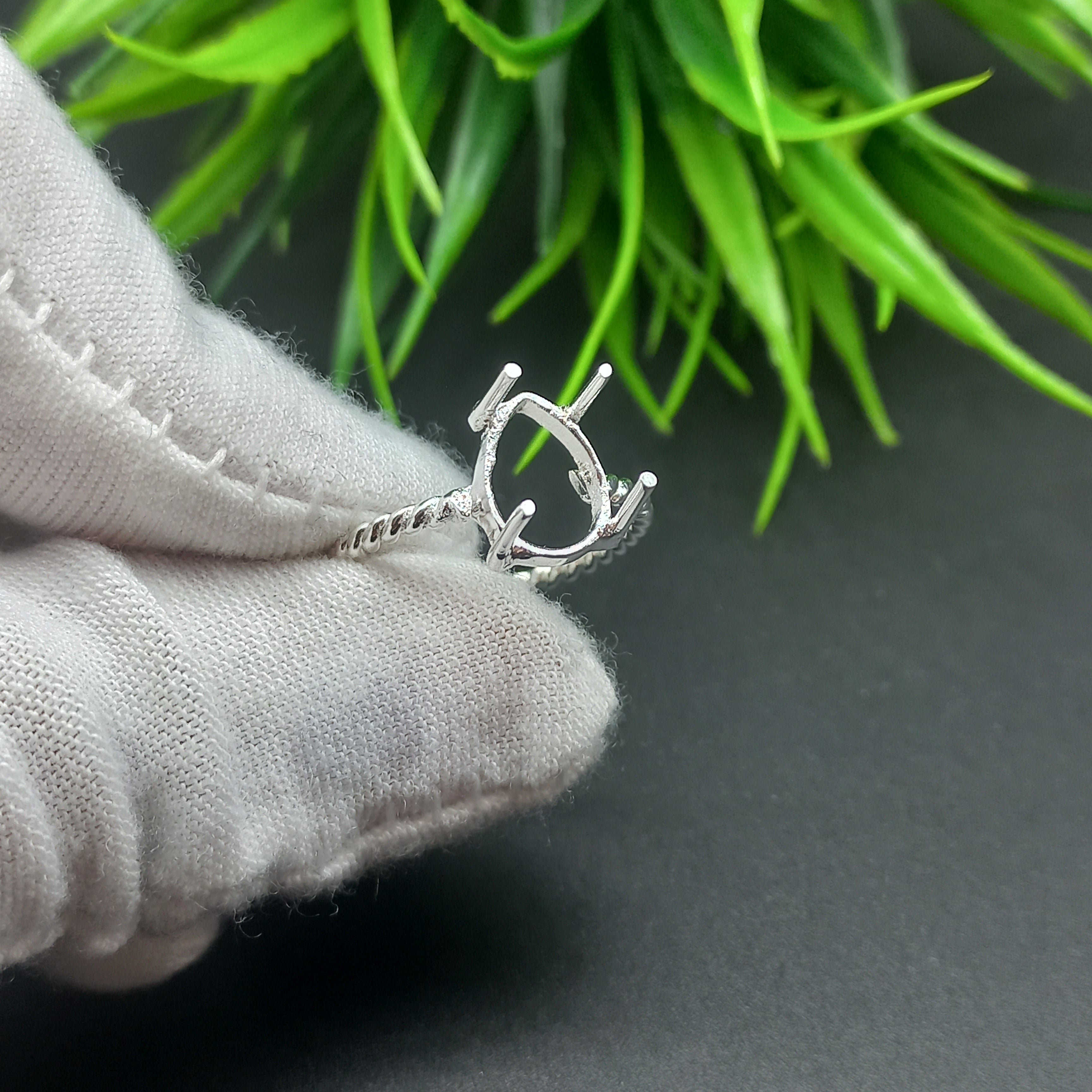 925 Sterling Silver Pear Spiral wire Ring, Plain Prong Cup Open Blank Ring, Setting For Making Ring 6x4 MM To 14x21 MM, DIY Jewelry Supplies