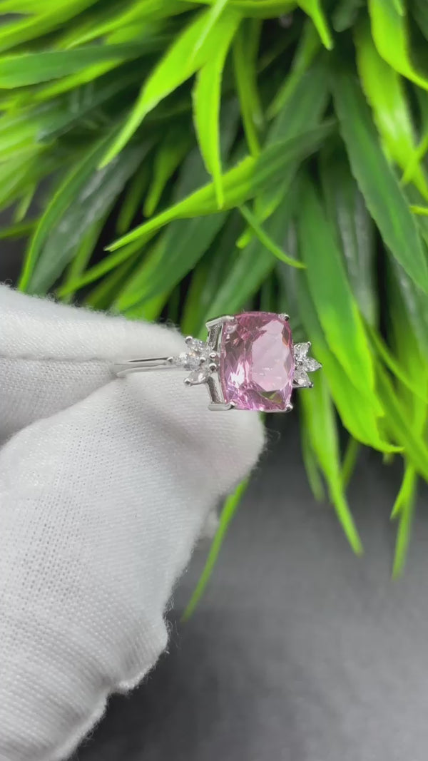 Natural Pink Quartz Octagon Solitaire Silver Ring, 925 Sterling Silver Ring, Engagement - Wedding Ring, Dainty American Diamond Jewelry